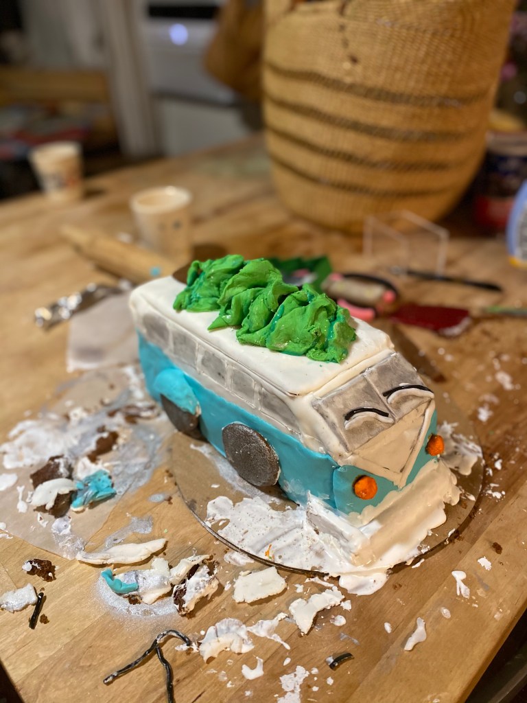 While my children were happily making gingerbread men + women, stars, and Christmas trees the other day, I decided to try my hand at something a little more involved. I’ve always wanted a Volkswagen bus. They are cheery + nostalgic, things I want to feel especially after such a hard year. Here’s hoping my husband gets the hint with my newest baked creation…it’s at the top of my Christmas Wish List. 😉