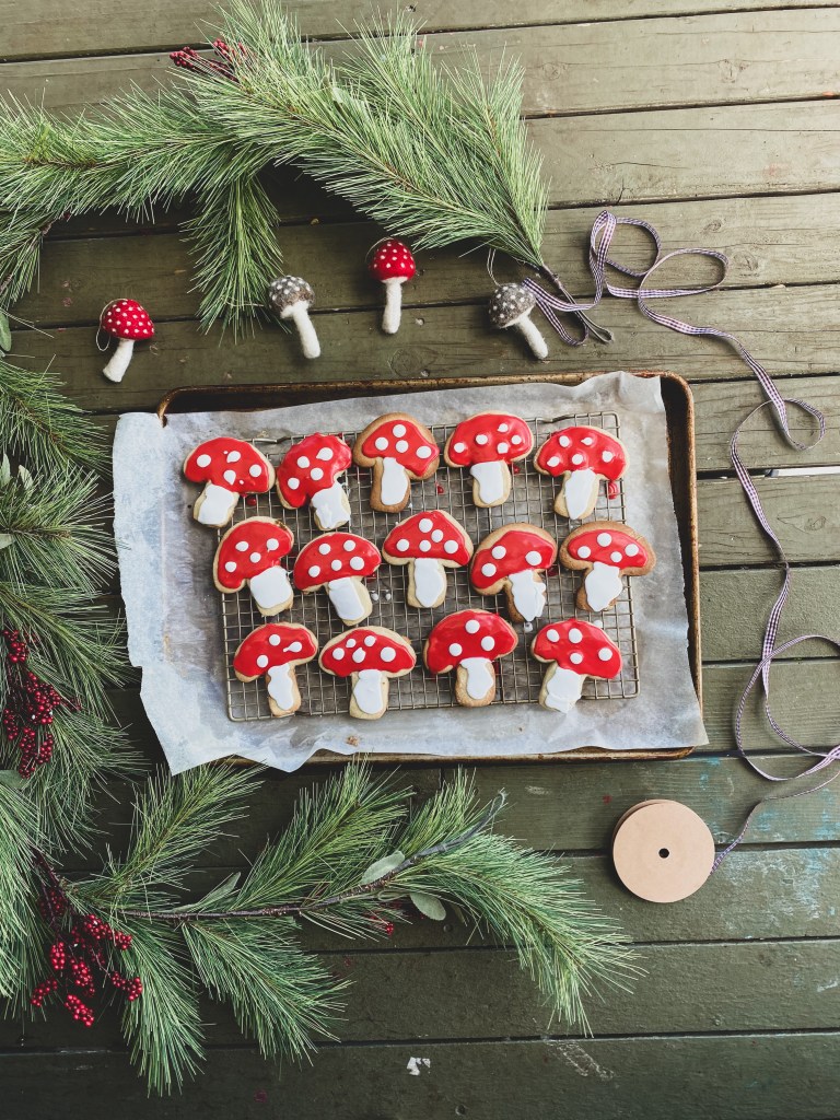 Some of this year’s favorites include mini gingerbread punch-out cookies thanks to the cutest little cookie stamp we acquired at the local thrift store. My recipe for gluten-free vegan gingerbread can be found on my previous post here. Also, dairy-free sugar cookies and teeny-tiny-super-cutesy shortbread with sprinkles. My favorite recipe by Preppy Kitchen is here + I basically make this recipe + add in mounds of tiny sprinkles + cut them itsy-bitsy, then bake for less time than the recommended amount, maybe 8 minutes? This year’s favorite cookie cutter is a mushroom shape, and of course, it’s so much fun shaping sugar cookies into Santa’s. Thanks to Half Baked Harvest’s Santa cookies for my inspo on these Santa faces in the first pic. Do you like to bake at Christmas? What are some of your favorites? Please comment below with a Christmas treat we’re missing. I still have about 15% capacity before baking burnout sets in…half-kidding.
