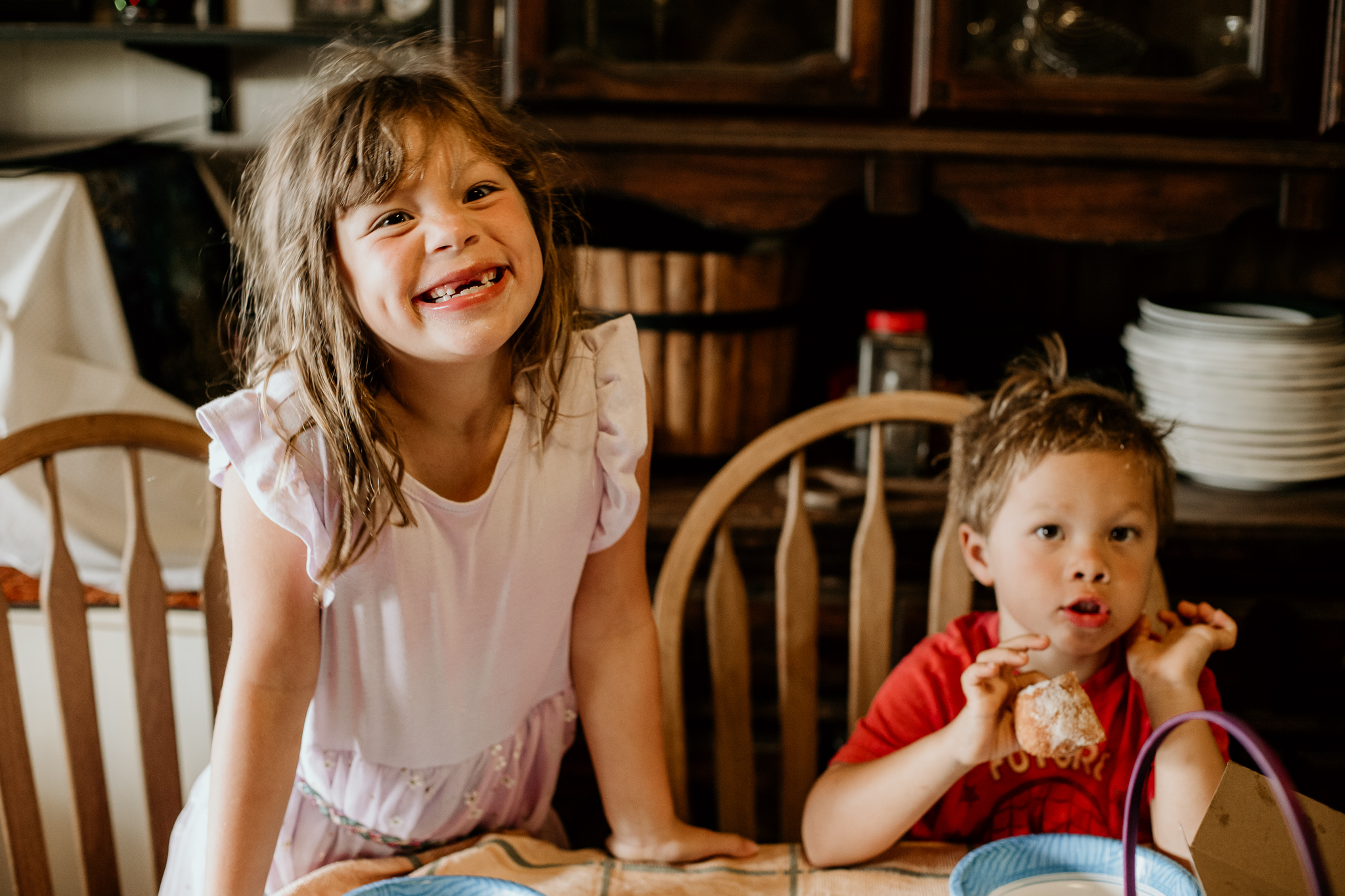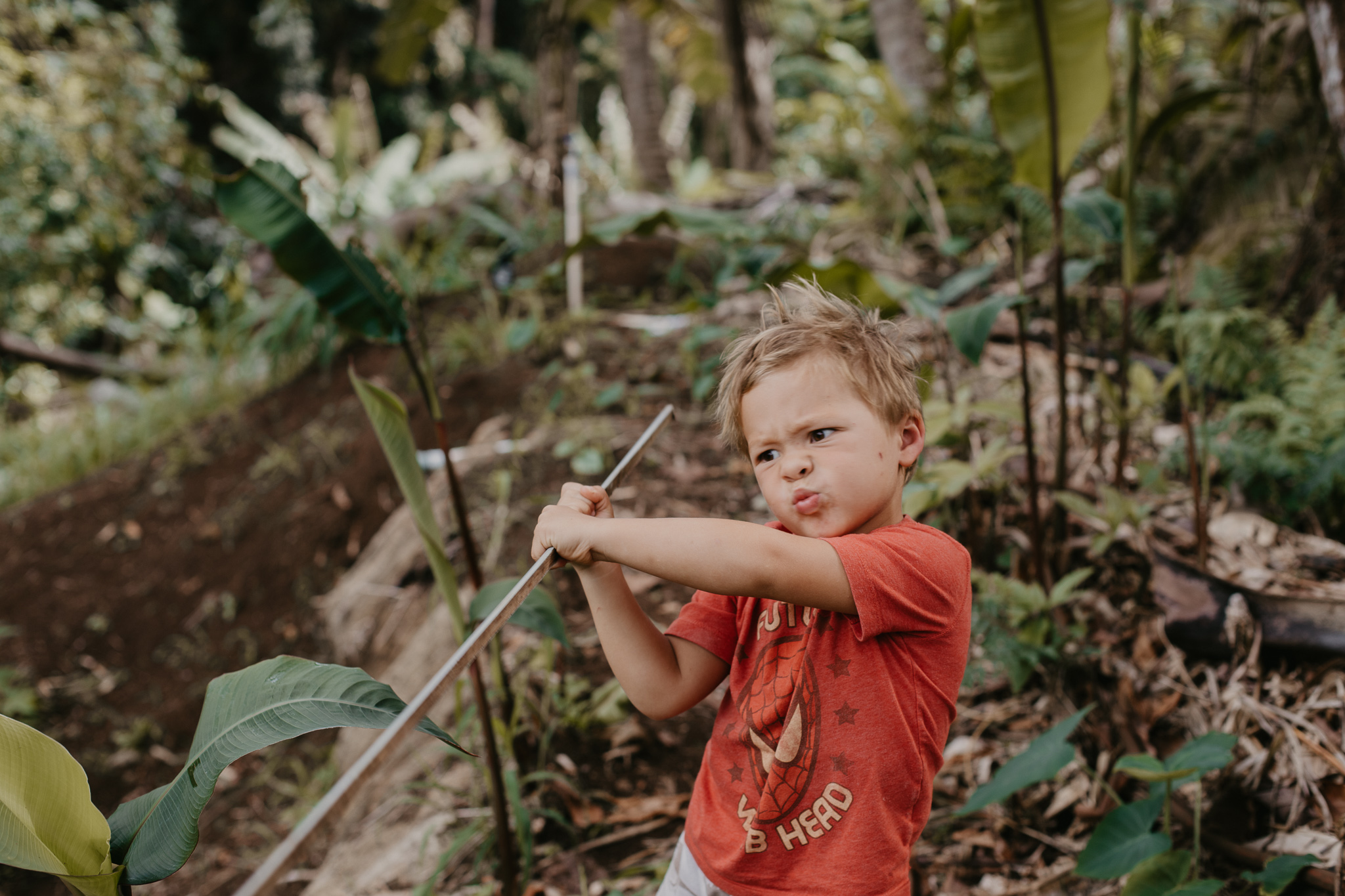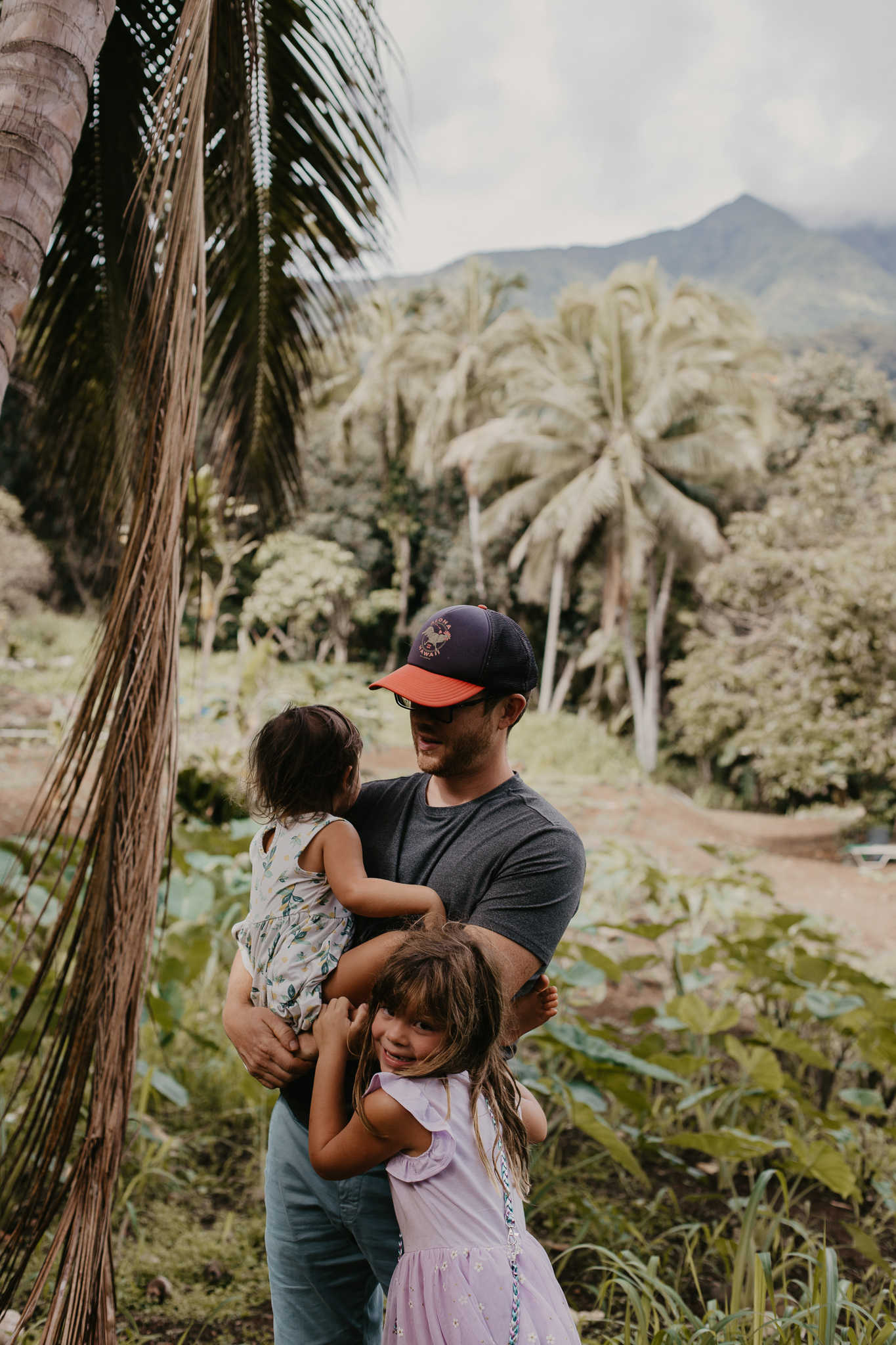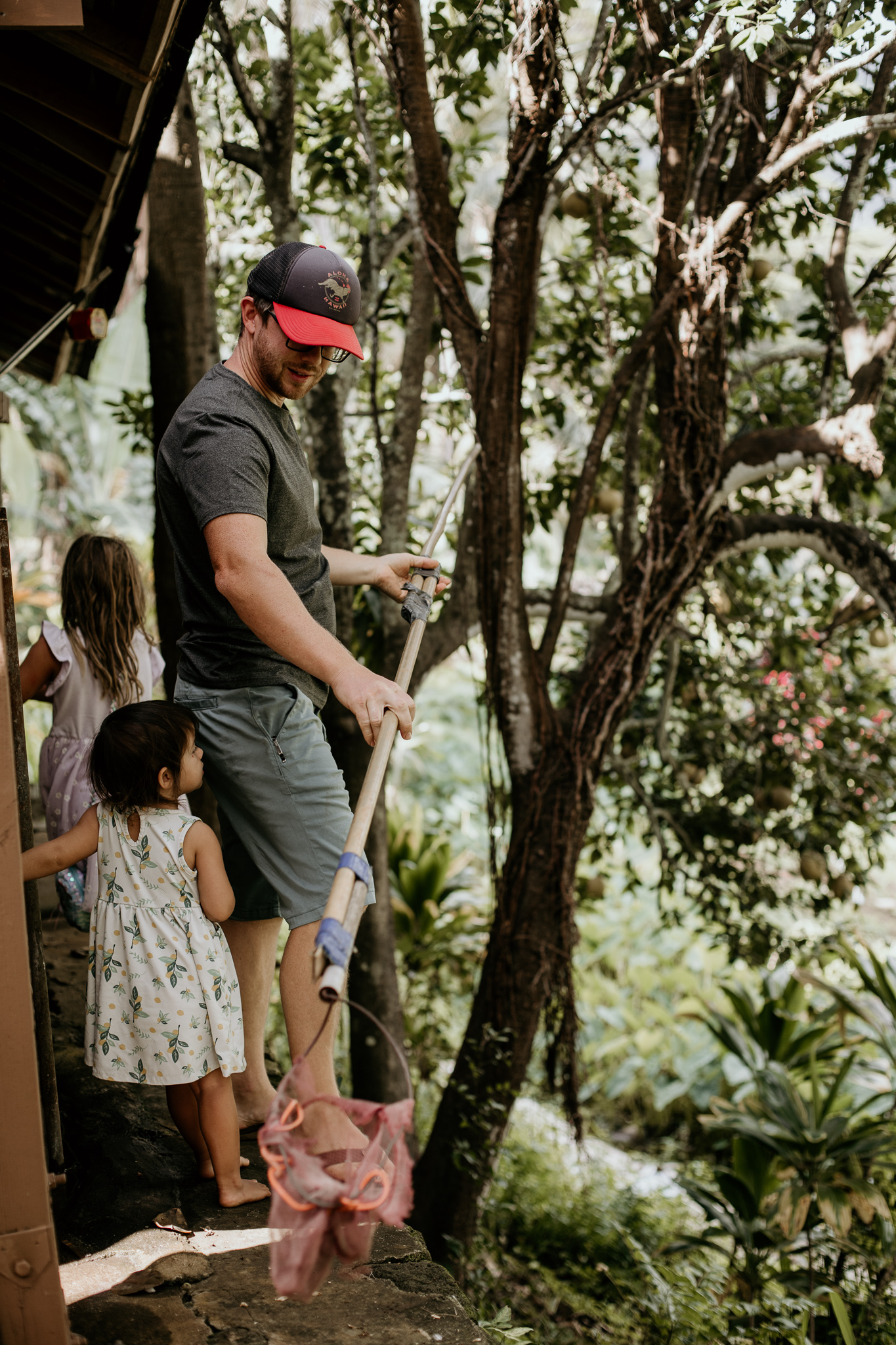 We wrapped up Ruby’s birthday weekend by visiting my Dad at the family farm. We brought fresh malasadas + my dad poured hot coffee while we laughed over what a fun day Saturday had been! After donuts, Ken and I took the kids on a long, leisurely hike up the valley at our family’s property, along the stream and beside a scenic cliff face, fishing for crawdads + identifying local plants with the kids. When they got too tired to hike further, we headed home with the kids, our car filled with fresh coconuts + avocados + taro plantings from my Aunty. I couldn’t have asked for a sweeter way to welcome in my daughter’s 6th birthday!