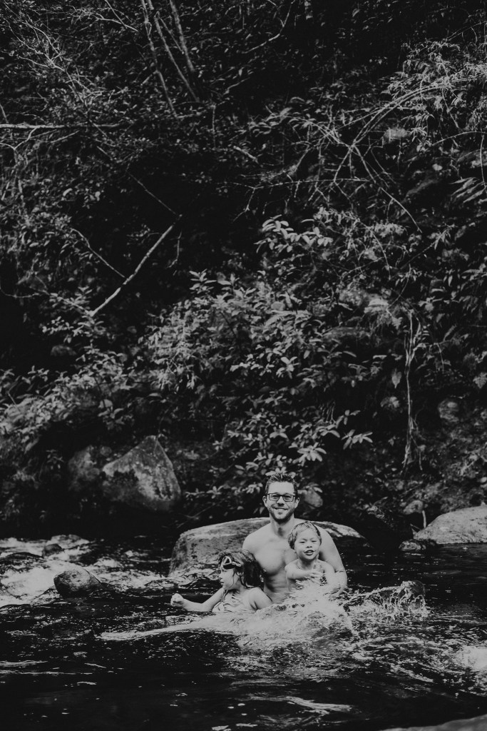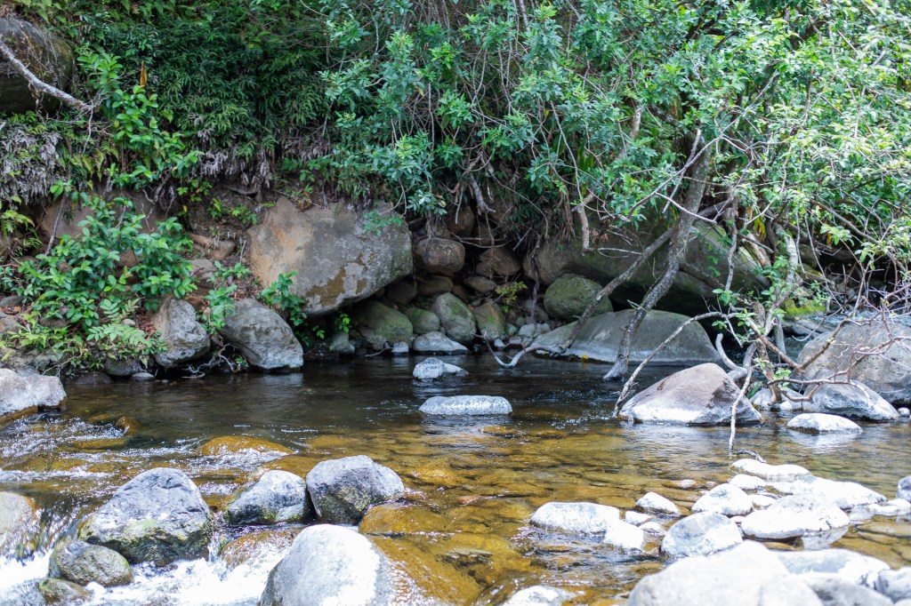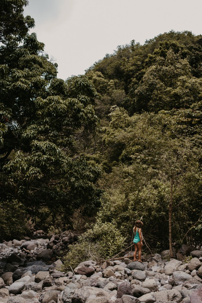 We spent the better part of the morning into lunchtime grazing and playing in the yard, pruning plants, moving banana trees + ti leaf trees to new locations in our yard, and then we decided it was time for a cool swim in the stream! (As an aside, Iao Valley is one of my favorite places in the whole world. I’d go there as a kid with my Dad and swim in the old Iao Valley public pool! Jumping into that pool took my breath away every single time. It felt colder than Iao stream!)