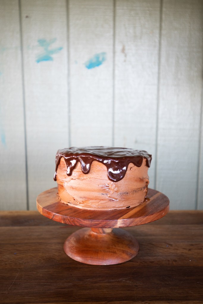 I’m bookending the week with baking. Simple, moist two-layer chocolate cake with a sandwiched filling of dark chocolate ganache and homemade salted caramel, all held together by whipped chocolate buttercream. There’s something very comforting to me about baking a cake and setting it on a cake stand. Maybe it’s my childhood memories of watching the 1988 “New Adventures of Pippi Longstocking” or how my grandma always baked her two famous desserts every Thanksgiving and Christmas and set them out to view before the meal began. There’s so much pleasure to be had in a clean table set with cake. What’s your favorite dessert that sparks a childhood memory to you? Happy weekend, friends! Also, here are the highly-anticipated pictures of the cake, cut. (Tell me I’m not the only one who likes to see the cake cut?! Hehe.) Enjoy!!