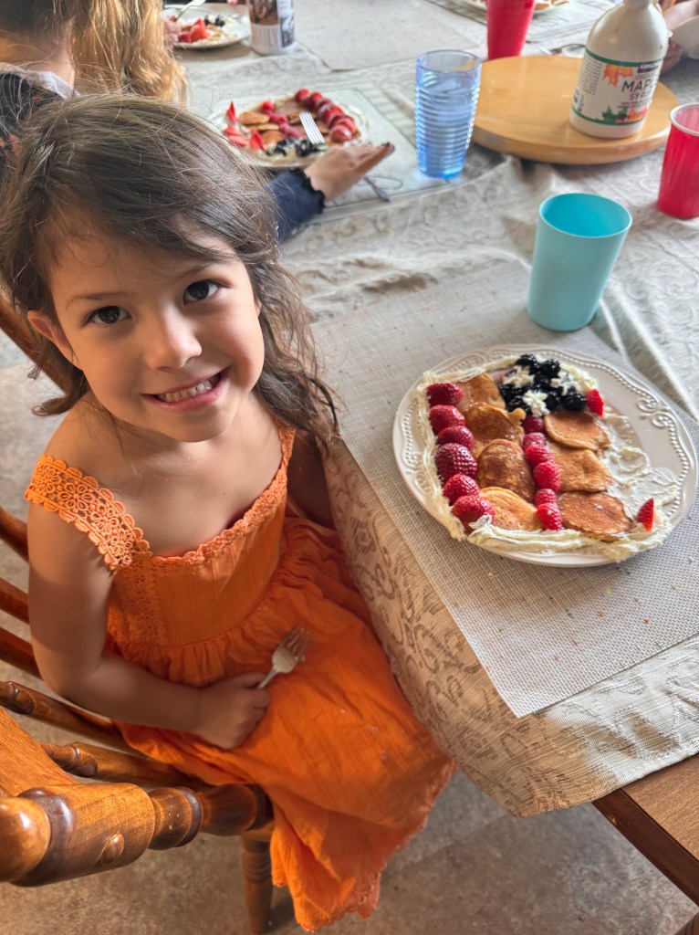 Happy 4th of July from Grandma and Grandpa’s cozy log cabin in Southcentral Alaska! Ken and I surprised our kids with patriotic mini pancakes this morning. Gluten-free and grain-free with tons of fresh berries and whipped cream. These little pancakes reminded me of how festive my sister-in-law is with each holiday and how much I admire her creativity over the years. Here are some photos of our festive meal. Happy Independence Day!